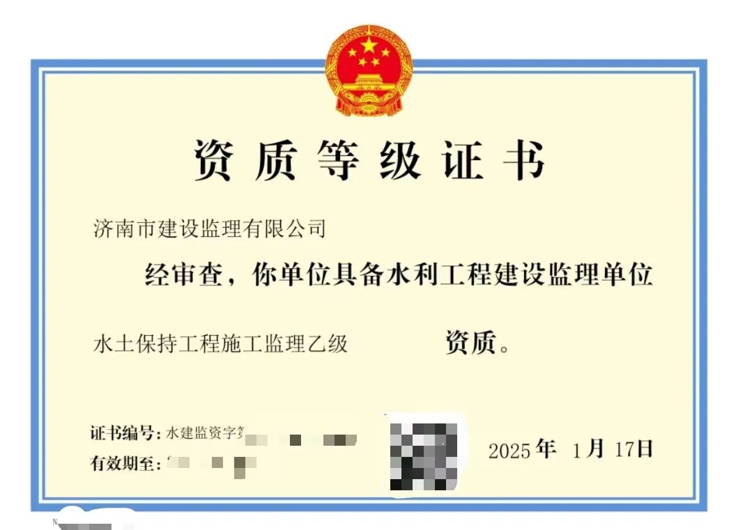 熱烈祝賀濟南監(jiān)理取得兩項水利工程建設(shè)監(jiān)理資質(zhì)